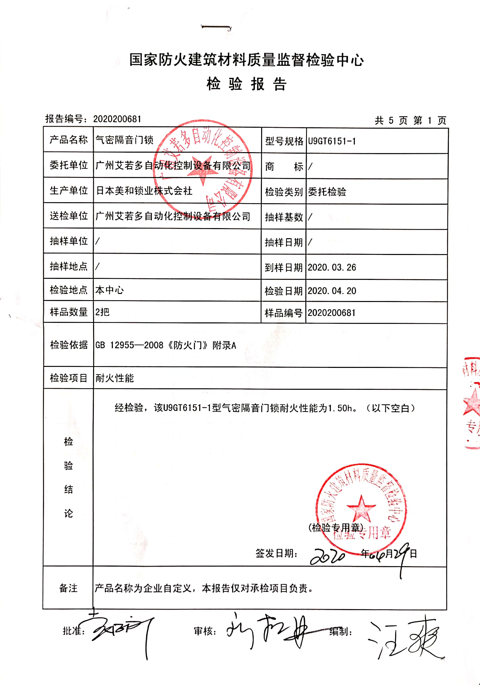地氣密隔音門(mén)鎖防火檢測(cè)報(bào)告